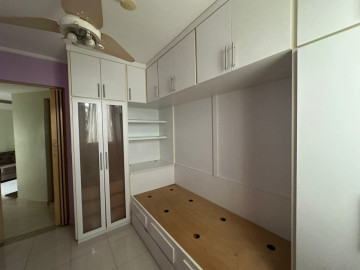 Apartamento com 56m² de área útil distribuídos em: 2 quartos mobiliados com cama e guarda roupa, 1 de casal e um infanto juvenil, banheiro com armário, box em vidro, sala de jantar com mesa com 6 cadeiras, espelho e Buffet, sala de TV com sofá, poltronas, painel para TV e rack, cortina, sacada, cozinha com armários, fogão, depurador de ar, área de serviço com armários e bem ventilada, 1 vaga de garagem descoberta.