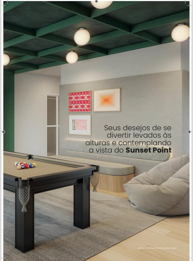 Portaria24h, Hall social, Piscina Adulto e Infantil, Churrasqueira, Churrasqueira festas, Playground, Salão de festas, Gourmet, Brinquedoteca, Fitness, Coworking, Lavanderia, Espaço Yoga, Espaço Pilates, Beauty Care, Espaço Massagem, Sauna, Pet Place, Pet Care, Bicicletário, Delivery, Mini mercado, Lounge Bar, Pub, Sunset Point Espaço Jogos.