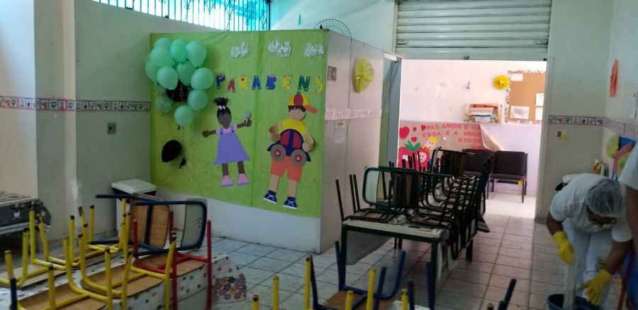 Cozinha industrial com toda estrutura exigidas por lei e autorização do corpo de bombeiros para comportar 194 crianças.