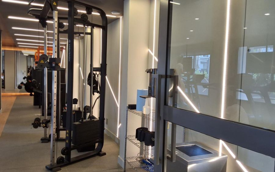 Para os amantes de esportes: Academia equipada e piscina para se refrescar nos dias de sol.