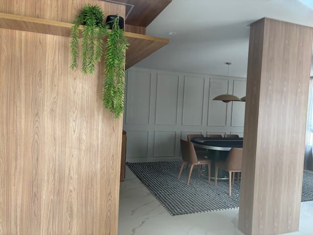Ambientes sociais: Living amplo para dois ambientes confortáveis e espaçosos, perfeitas para receber amigos e familiares, além de um elegante lavabo.