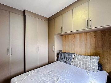 Ao entrar, a integração dos ambientes revela um projeto inteligente. A cozinha americana com armários flui harmoniosamente para a sala de jantar e de estar, criando um cenário perfeito para momentos de convivência e hospitalidade. O imóvel, semimobiliado, já oferece a base necessária para que você imprima sua personalidade em cada detalhe. A sacada estende o olhar para fora, proporcionando uma vista panorâmica que convida à contemplação e traz a luminosidade natural para dentro dos dormitórios. Banheiro com armário e ventilação natural, área de serviço com armário muito bem ventilada.