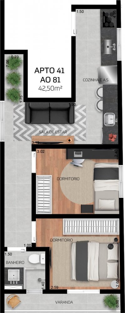40m² 02 dorms R$ 185.000 (COM 2 SACADA)