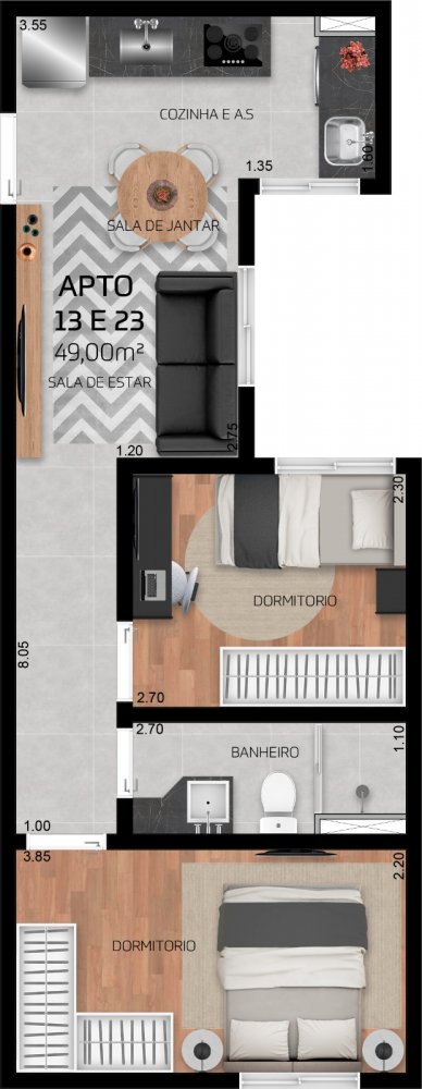 - Dormitórios2 Banheiros1