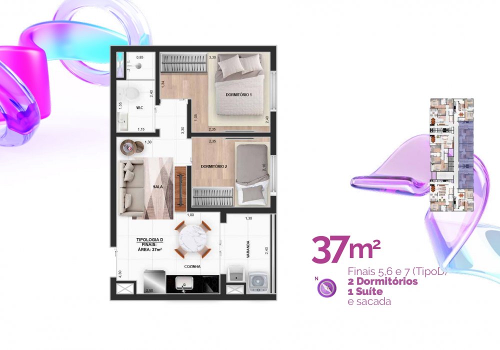 - Área Privativa: 37 m²