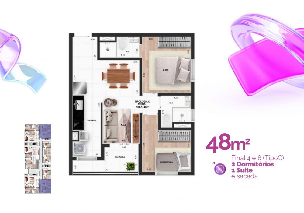Planta de 37m², 48 m², 84m² e 95m² / Opção com ou sem vaga.